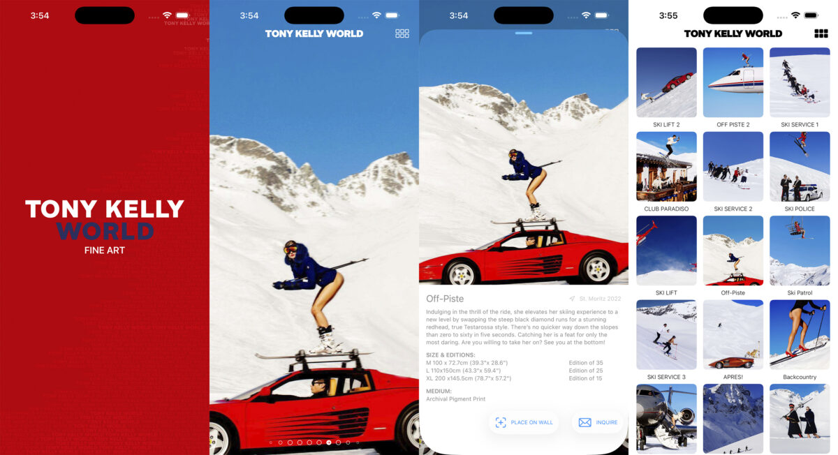 A custom Augmented Reality iOS gallery app for acclaimed photographer Tony Kelly that enables collectors to explore, visualize, and enquire about limited-edition artworks — complete with accurate sizing, frame customization, and real-world wall placement for confident purchasing decisions.